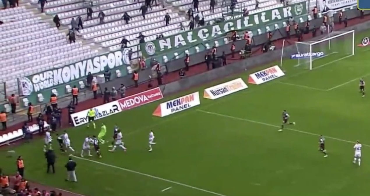 90+5’te Guilherme’nin yaptığı ortada kafalardan seken top Trabzonspor savunmasından oyun alanına döndü. Konyasporlu oyuncular elle müdahale gerekçesiyle penaltı bekledi. Pozisyonun ardından iki takım arasında gerilim yaşandı.